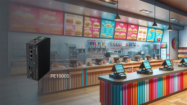 The ASUS IoT PE1000S industrial computer, tailored for the food and beverage sector, features a compact, fanless design. It is tiny and may be mounted directly behind a digital display, maximizing space while maintaining the store's aesthetic consistency. The fanless heat-dissipation design is an essential feature, effectively averting disruptions caused by dust accumulation or fan failure in traditional equipment. It ensures reliable operation even under harsh conditions, such as high temperatures and oil vapor.